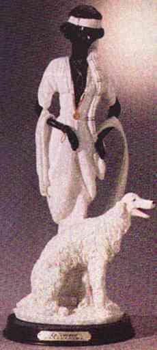 details on both lady and Russian wolfhound. Alabastrite. 15" high: base is 5 1/2" x 4 1/4" $59.95 |