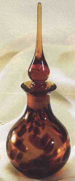 perfume bottle in a tortoise-shell pattern, with a tall,